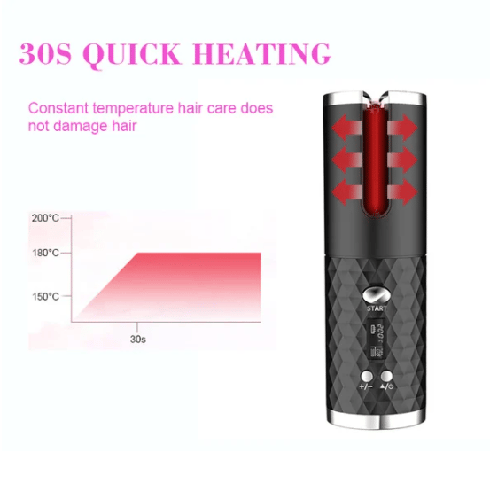 [Intelligent System] wireless automatic curling iron can freely set the temperature (150 ° C, 180 ° C, 200 ° C), curling time (8S, 14S, 18S )and the direction of the curls (left or right).